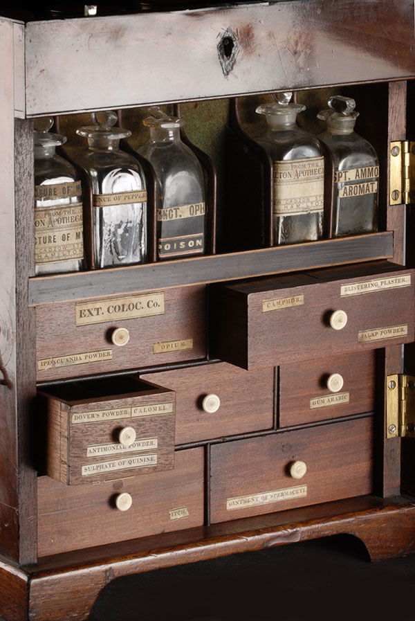 1890 medicine chest containing a bottle of opium